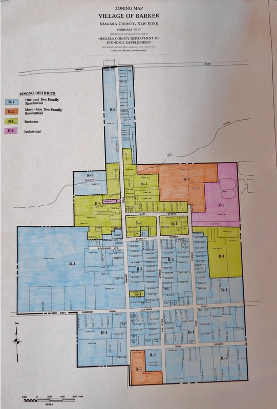 The Village of Barker Zoning Ordinance establishes allowable land uses in each zoning district identified in the Zoning Map and sets forth requirements for site design, building heights and setbacks, subdivision of land, issuance of special permits, and the administrative processes for project review including review by the Planning Board and Zoning Board of Appeals, among other regulations.